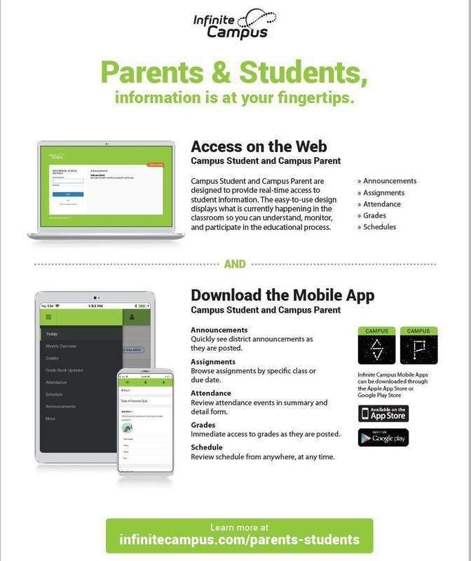 - DISTRICT AND SCHOOL ANNOUNCEMENTS – Available for viewing through the Campus Parent Portal